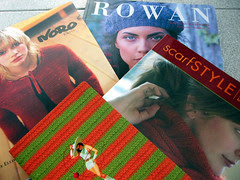 So I went out and got myself a few magazines and books for inspiration (Noro Knits, Rowan #36, Scarf Style and the essential Stitch n' Bitch journal, of course !)